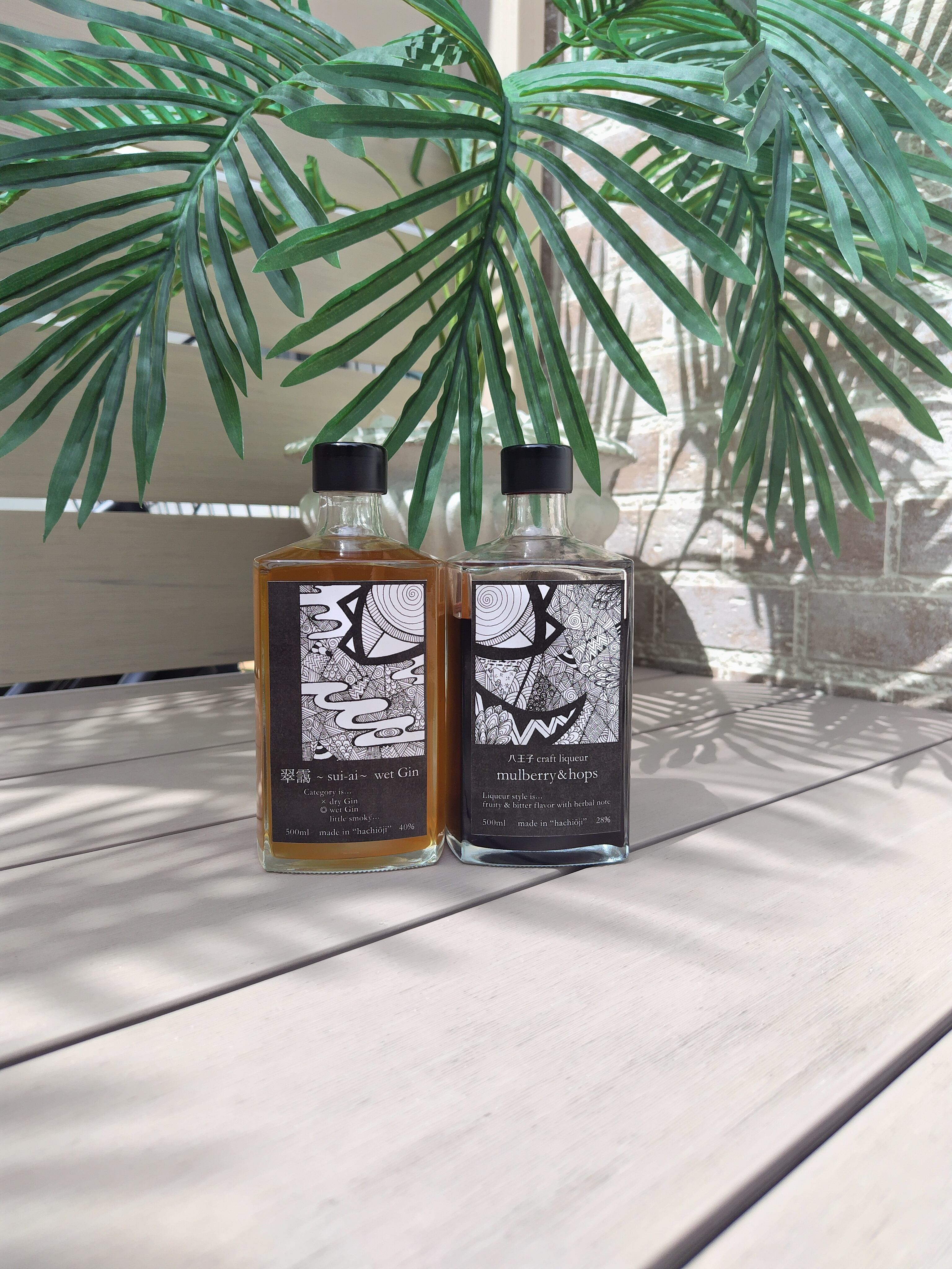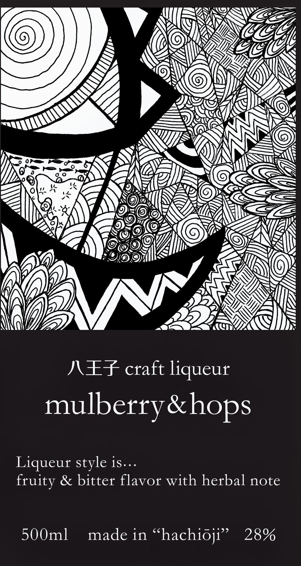 八王子craft liqueur 〚mulberry&hops〛は八王子に所縁のある mulberry=桑の実と、八王子産ひよどり山ホップによる、甘くてほんのり苦いタイプのリキュールです。